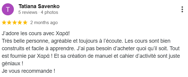 Je vous propose des cours de grec moderne, pensés avec soin pour les francophones, afin de rendre votre apprentissage simple, agréable et efficace.